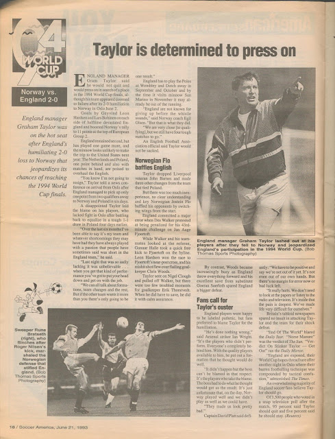 (June 2, 1993, World Cup Qualifier, Norway 2-England 0) |